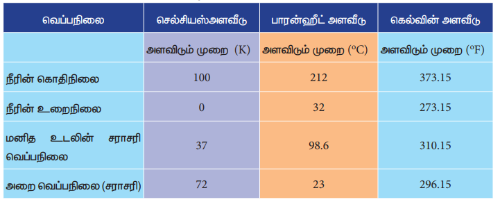 வெப்பம் மற்றும் வெப்பநிலை | இரண்டாம் பருவம் அலகு 1 | 7 ஆம் வகுப்பு அறிவியல் - வெப்பநிலைமானியில் பயன்படுத்தப்படும் அளவீடுகள் | 7th Science : Term 2 Unit 1 : Heat and Temperature