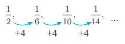 (i) 1/2, 1/6 , 1/10, 1/14 , . . . .