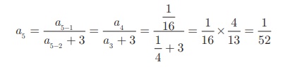 எனவே, தொடர்வரிசையின் முதல் ஐந்து உறுப்புகள் 1, 1, 1/4, 1/16 மற்றும் 1/52 ஆகும்.