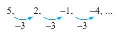 இங்கு ஒவ்வோர் உறுப்பும் முந்தைய உறுப்பைவிட 3 குறைவாக உள்ளது. எனவே அடுத்த மூன்று உறுப்புகள் -7, -10, -13.