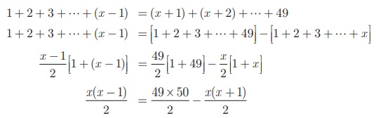 x2 - x = 2450 − x2 − x ⇒ 2x2 = 2450 ⇒ x2 = 1225 ⇒ x = 35