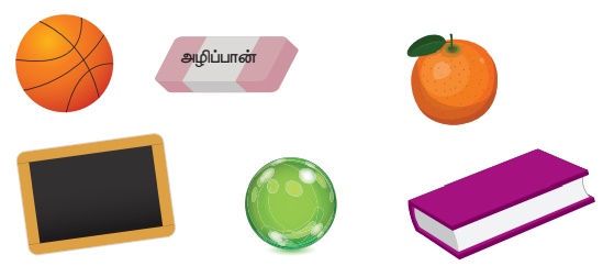 மேற்காணும் பொருட்கள் போன்ற சிலவற்றை மேசையின் மீது பார்வைக்கு வைத்து, அவற்றினை மாணவர்கள் அடையாளம் காண ஆசிரியர் உதவுதல். மேலும், ஒவ்வொரு பொருளையும் தொட்டுப் பார்த்து, அப்பொருளின் பெயரைக் குறிப்பிட்டு அது வளைவானதா? தட்டையானதா? என மாணவர்கள் கூற ஆசிரியர் உதவுதல்.