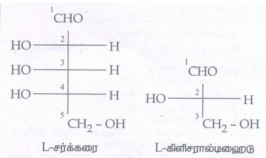 • ஏனெனில் C4 ல் உள்ள H மற்றும் OH ஆனது Lகிளிசரால்டிஹை டின் C2 கார்பனை போன்று அமைந்துள்ளது