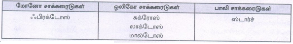 11. பின்வருவனவற்றை மோனோசாக்கரைடுகள், ஒலிகோசாக்கரைடுகள் மற்றும் பாலிசாக்கரைடுகள் என வகைப் படுத்துக.