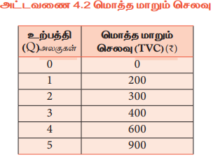 உதாரணமாக TC = Q3 - 18Q2+91Q+12 - என இருந்தால் மாறும் செலவு TVC= Q3-18Q2+91Q –என இருக்கும்.