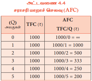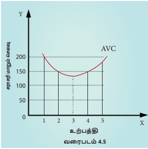 சராசரி மாறும் செலவை கீழ்காணும் அட்டவணை 4.5 மற்றும் வரைபடம் 4.5 விளக்குகிறது.