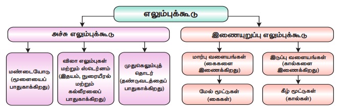 எலும்பு மண்டலமானது உடல் இயக்கத்திற்கு உதவும் எலும்புகள் மற்றும்