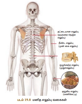 ஒன்றாக இணைக்கின்றன. மனித எலும்பு மண்டலத்தில் பல்வேறு வகையான எலும்புகள் உள்ளன. அவையாவன: