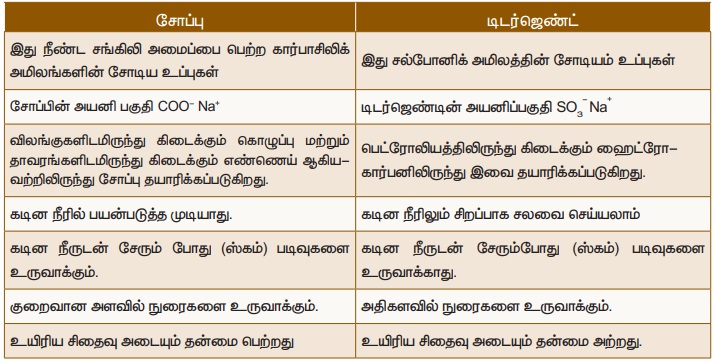 இழுவிசையை குறைக்கின்றன. சோப்பு மற்றும் டிடர்ஜெண்ட்கள் வெவ்வேறு வேதியியல்