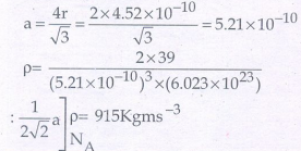 20. பொட்டாசியம் (அணு எடை 39gmo1-1) bcc வடிவமைப்பை பெற்றுள்ளது. இதில் நெருங்கி அமைந்துள்ள இரு அடுத்தடுத்த அணுக்களுக்கிடை யேயானத் தொலைவு 4.52A° ஆக உள்ளது. அதன் அடர்த்தி