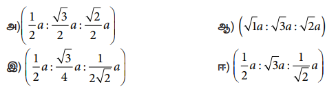 விடை : இ) (1/2 a : √3/4 a : 1/2√2 a)