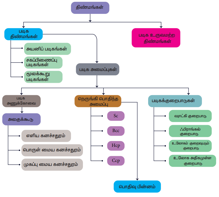 இப்பாட பகுதியில் திடப்பொருட்களின் பண்புகள், அவைகளை வகைப்படுத்துதல், அவற்றின் வடிவமைப்புகள் ஆகியனவற்றைக் கற்றறிவோம். மேலும் படிகக் குறைபாடுகள் மற்றும் அவற்றின் முக்கியத்துவத்தினையும் கற்றறிய உள்ளோம்.