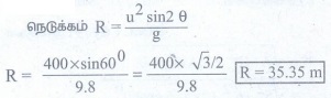 16. எறிபொருளொன்று 30° எறிகோணத்தில் எறியப்படுகிறது. அதன் ஆரம்பத்திசைவேகம் 5ms-1 எனில் எறிபொருள் அடைந்த பெரும உயரம் மற்றும் கிடைத்தள நெடுக்கத்தைக் கணக்கிடுக.