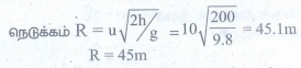 18. 100m உயரம் உள்ள கட்டிடம் ஒன்றின் உச்சியிலிருந்து, 10ms-1 திசைவேகத்துடன் எறிபொருளொன்று கிடைத்தளத்தில் வீசி எறியப்படுகிறது. எறிபொருள் அடைந்த கிடைத்தள நெடுக்கம் என்ன?
