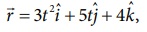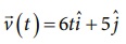 திசைவேகம் இரண்டு கூறுகளை மட்டுமே பெற்றுள்ளது. அதாவது Vx = 6t (நேரத்தைச் சார்ந்துள்ளது) மற்றும் Vy = 5 (நேரத்தைச் சாராதது)