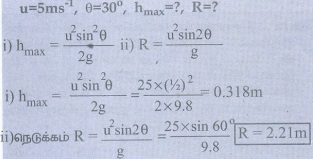 தீர்க்கப்பட்ட எடுத்துக்காட்டு கணக்குகள் எறிபொருளின் இயக்கம்