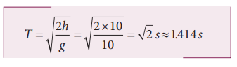 10 m உயரத்திலிருந்து இரும்புப் பந்து மற்றும் இறகு இரண்டும் ஒரே நேரத்தில் விழுகின்றன. இரும்புப் பந்து மற்றும் இறகு இரண்டும் தரையை அடைய எடுத்துக்கொள்ளும் நேரம் எவ்வளவு?
