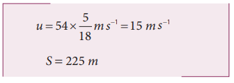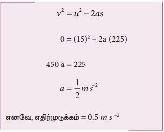 இரயில் வண்டியொன்று 54 km h-1 என்ற சராசரி வேகத்தில் சென்று கொண்டிருக்கிறது. தடையை செலுத்திய பின்பு அவ்வண்டி 225 m சென்று நிற்கிறது எனில் இரயில் வண்டியின் எதிர் முடுக்கத்தைக் காண்க.