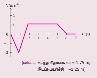 (b) தொலைவு = (v-t) வரைபடத்தின் பரப்பு