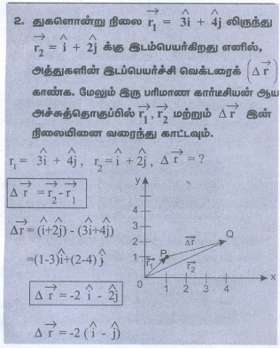 1. துகளொன்றின் நிலை வெக்டரின் நீளம் 1m. அது x அச்சுடன் 30° கோணத்தில் உள்ளது எனில், நிலைவெக்டரின் x மற்றும் y கூறுகளின் நீளங்களைக் காண்க.
