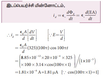 12th Physics : UNIT 5 : Electromagnetic Waves : Solved Example Problems on Displacement current and Maxwell’s correction to Ampere's circuital law Electromagnetic Waves | Physics in Tamil : 12th Standard