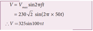 230 VRMS மதிப்பும் 50 Hz அதிர்வெண்ணும் கொண்ட மாறுதிசை மின்னழுத்த மூலத்துடன் இணைத்தட்டு மின்தேக்கி ஒன்று இணைக்கப்பட்டுள்ளது. மின்தேக்கியின் தட்டுகளுக்கு இடையேயான தொலைவு 1 mm மற்றும் அவற்றின் பரப்பளவு 20 cm2 எனில் நேரம் t = 1 S -ல் இடப்பெயர்ச்சி மின்னோட்டத்தின் மதிப்பைக் கணக்கிடுக.
