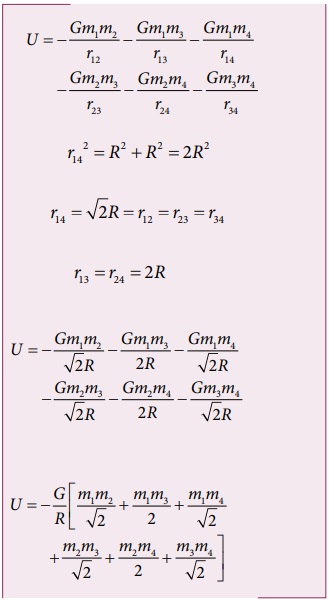 (அ) நான்கு நிறைகள் கொண்ட அமைப்பின் ஈர்ப்பு நிலை ஆற்றல்