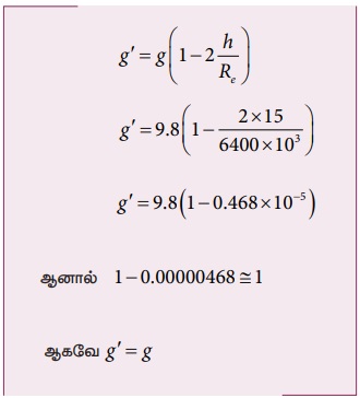 14. புவிப் பரப்புக்கு மேலே 200 km உயரத்திலும் மற்றும் கீழே 200 km ஆழத்திலும் ஈர்ப்பின் முடுக்கம் g மதிப்பு யாது? எந்நிலையில் g மதிப்பு குறைவாக இருக்கும்?