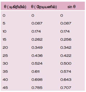 θ என்பது ரேடியனில் உள்ளபோது, சிறிய கோணங்களுக்கு sin θ ≈ θ