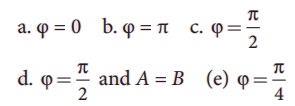 4. ஒத்த அதிர்வெண்ணும் வெவ்வேறான வீச்சுகளும் கொண்ட இரு சீரிசை இயக்கங்கள் x மற்றும் y அச்சுகளின் வழியே x = A sin (ωt + φ) (x அச்சின் வழியாக) மற்றும் y = B sin ωt (y அச்சின் வழியாக) என்ற வீச்சுகளுடன் இயக்க மடைகிறது எனக் கொள்க.
