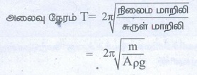3. ρ அடர்த்தி கொண்ட திரவத்தின் மீது m நிறை கொண்ட மரக்கட்டை மிதந்து கொண்டிருக்கிறது. அக்கட்டை இலேசாக கீழ்நோக்கி அமுக்கப்பட்டு விடப்படும் போது சீரிசை இயக்கத்தை மேற்கொள்கிறது.