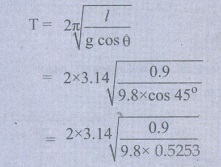 2. கிடைத்தளத்துடன் 45° கோணம் ஏற்படுத்தும் சாய்தளத்தில் வைக்கப்பட்டுள்ள உருளும் டிராலியில் l = 0.9 m நீளமுள்ள தனிஊசல் முறையாக பொருத்தப் பட்டுள்ளதாக கொள்வோம். சாய்தளமானது உராய்வற்றது எனில் தனிஊசலின் அலைவுக்காலத்தை கணக்கிடுக.