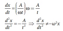 இந்த வகைக்கெழுச் சமன்பாடு தனிச்சீரிசை இயக்கத்தின் வகைக்கெழு சமன்பாடு (சமன்பாடு 10.10) போன்று அமையவில்லை. எனவே, x = A ln ωt தனிச்சீரிசை இயக்கத்தைக் குறிக்காது.
