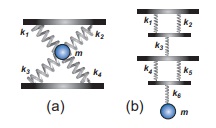 கீழ்க்காணும் அமைப்புகளின் தொகுப்பயன் சுருள்வில் மாறிலியின் மதிப்பைக் கணக்கிடுக. அனைத்து சுருள்வில்களுக்கும் சுருள்மாறிலிகளின் மதிப்பு சமம் எனக் கொண்டு கணக்கீடு செய்க.