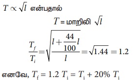 ஒரு தனி ஊசலின் நீளம் அதன் தொடக்க நீளத்திலிருந்து 44% அதிகரிக்கிறது எனில் தனி ஊசலின் அலைவுநேரம் அதிகரிக்கும் சதவீதத்தை கணக்கிடுக.