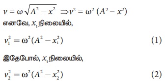 ஒரு துகளானது தனிச்சீரிசை இயக்கத்தை மேற்கொள்ளுவதாக கொள்வோம். x1 நிலையில் துகளானது v1 திசைவேகத்தையும் மற்றும், x2, நிலையில் v2, திசைவேகத்தையும் பெற்றிருப்பதாகக் கருதுவோம். அலைவு நேரம் மற்றும் வீச்சின் தகைவு