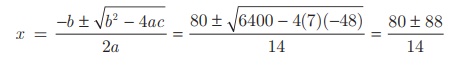 x2 − 10x – (1/8)x2 = 6 ⇒ 7x2 − 80x − 48 = 0