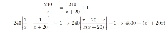 x2 + 20x – 4800 = 0 ⇒ (x + 80) (x − 60) = 0 ⇒ x = –80 or 60.