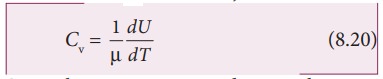 CV என்பது பருமன் மாறா மோலார் தன்வெப்ப ஏற்புத்திறன் எனில் சமன்பாடு (8.20) ஐ பின்வருமாறு எழுதலாம்.