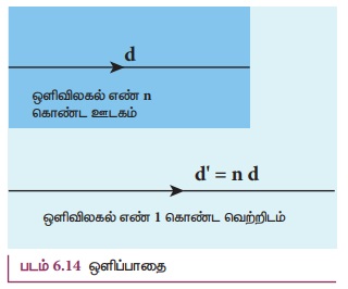 எனவே, ஊடகத்தின் ஒளிப்பாதை d" எப்போதும் dஐவிட அதிகமாக இருக்கும். ஊடகத்தின் ஒளிப்பாதை