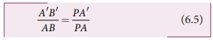 முதன்மை அச்சுக்குச் செங்குத்தாகக் வரையப்படும் A'B' என்பது பொருள் ABன் மெய் மற்றும்