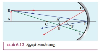 ஏற்படும் பிம்பம் படம் 6.12இல் காட்டப்பட்டுள்ளது. பொருளின் B புள்ளியிலிருந்து புறப்படும்