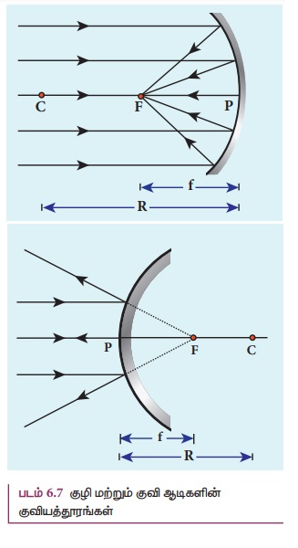 முதன்மைக் குவியம் (F) வழியாகச் செல்லும். இதற்கான வடிவியல் விளக்கம் படம் 6.9இல் காட்டப்பட்டுள்ளது.