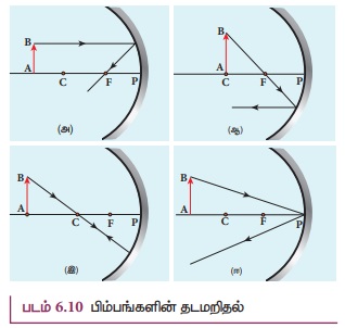 கதிர்கள் ஒன்றை ஒன்று சந்திக்க வேண்டும். பிம்பப்புள்ளியைக் கண்டறிய படம் 6.10இல் காட்டியுள்ளவாறு