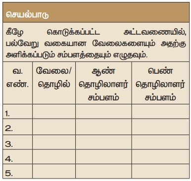 பல்வேறு வகையான வேலைகளையும் அதற்கு அளிக்கபடும் சம்பளத்தையும் எழுதவும்.