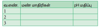 பல்வேறு மண் மாதிரிகளின் pH மதிப்புகளை அட்டவணையில்