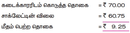 மீதம் பெற்ற தொகை = ₹ 9.25