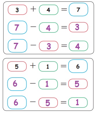 ஒரு கூட்டல் கூற்றிலிருந்து இரண்டு கழித்தல் கூற்றுகளை உருவாக்கலாம்.