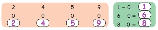 எந்த ஓர் எண்ணிலிருந்தும் பூச்சியத்தைக் கழிக்க அதே எண் தான் கிடைக்கும்.