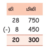 எனவே, 28 லி 750 மிலி − 8 லி 450 மிலி = 20 லி 300 மிலி